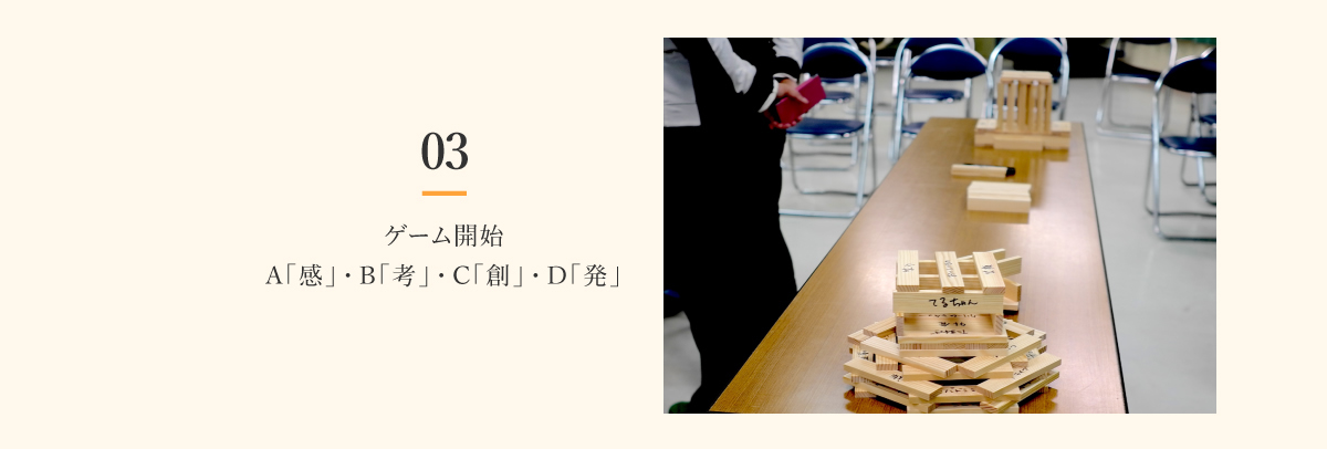 • 03ゲーム開始 A「感」・B「考」・C「創」・D「発」